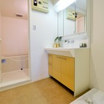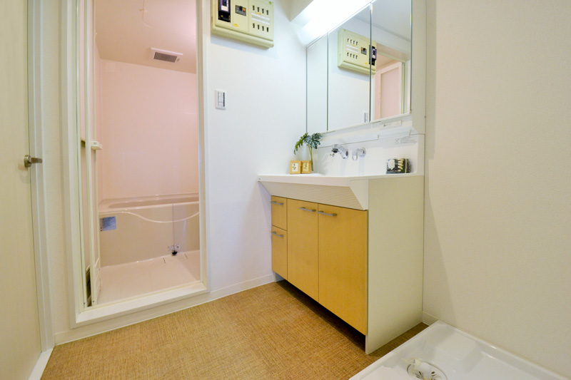 - キッチン横の洗面所への扉は開閉しやすい引き戸を採用
