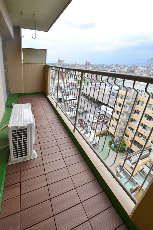 バルコニーにウッドデッキ