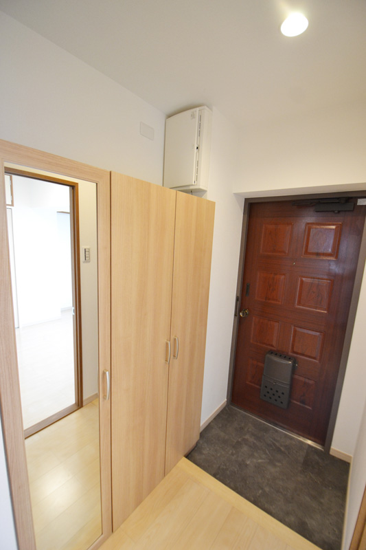 玄関には大型ミラー付きシューズボックス