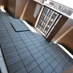- ダークグレーのおしゃれなウッドデッキは特殊木材チップ加工製