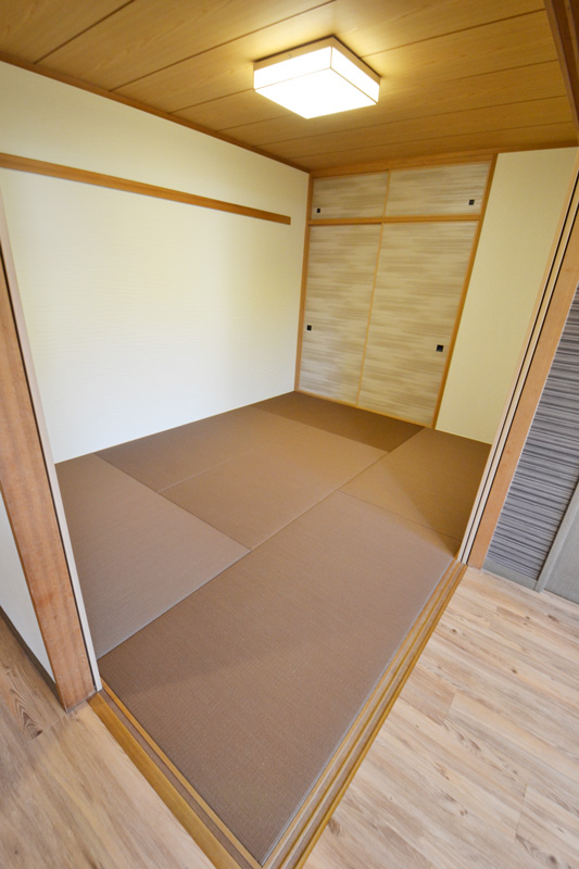 琉球調畳の和室、襖にもデザイン性をもたせました