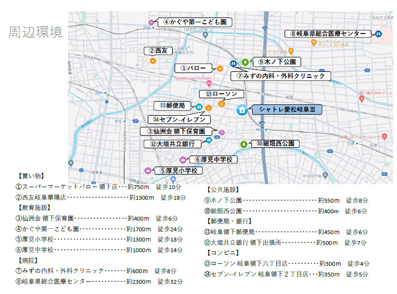 ②西友岐阜華陽店・・・・・・・・・・・・・・・・・・・・約1300m 徒歩17分