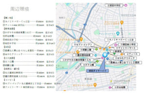 駅・病院やスーパーが徒歩5分圏内に揃った便利な環境です。小学校・幼稚園・公園なども点在しており子育てにもぴったりです。