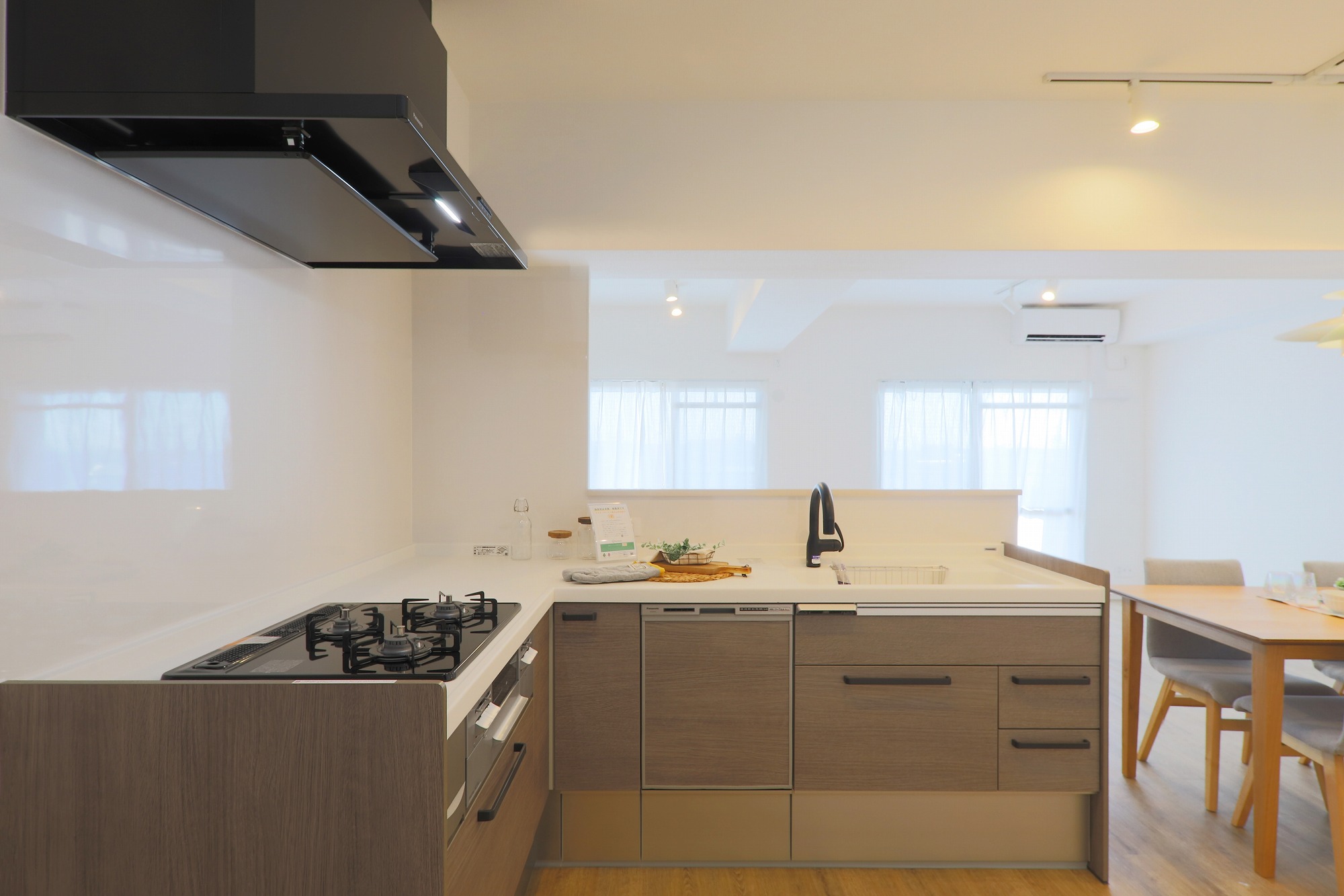 作業スペースを広く使えるL型キッチンです。