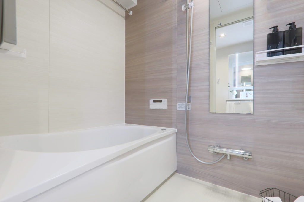 <TOTOのユニットバス新品交換>お湯が冷めにくい魔法ビン浴槽・お掃除ラクなほっカラリ床など、快適お過ごしいただけるバスルームとなっています。