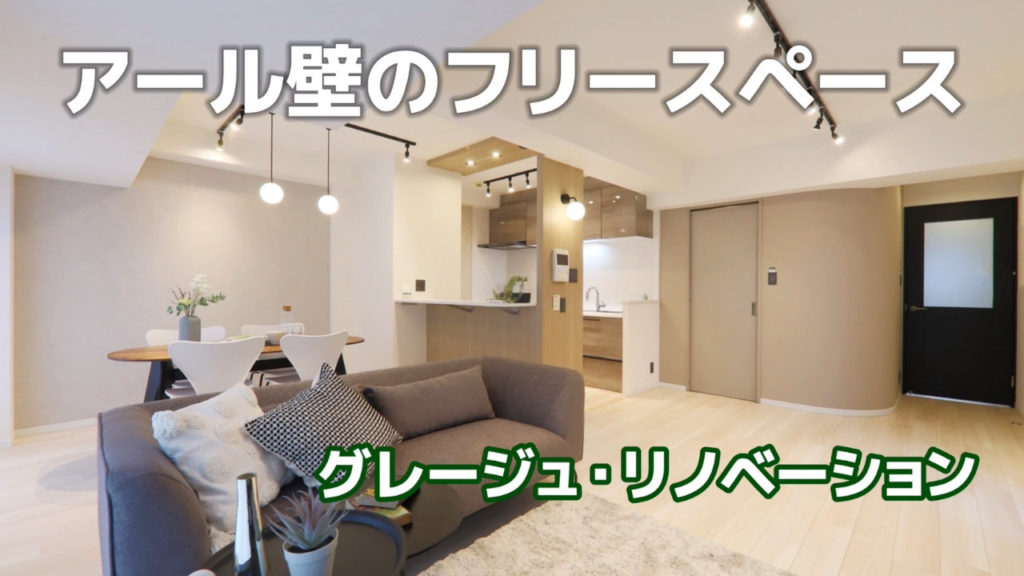 アール壁のフリースペースが印象的なグレージュカラー・リノベ