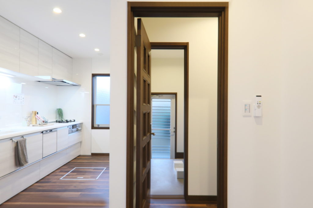廊下をまっすぐ行ってもらうと階段下に収納があります。