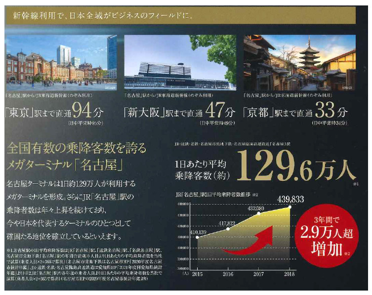 全国有数の乗降客数を誇る目がターミナル「名古屋」駅が最寄り駅であることの価値をご享受いただける立地です。