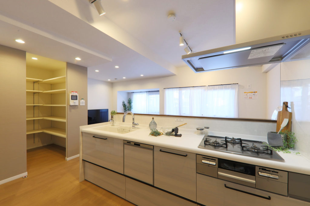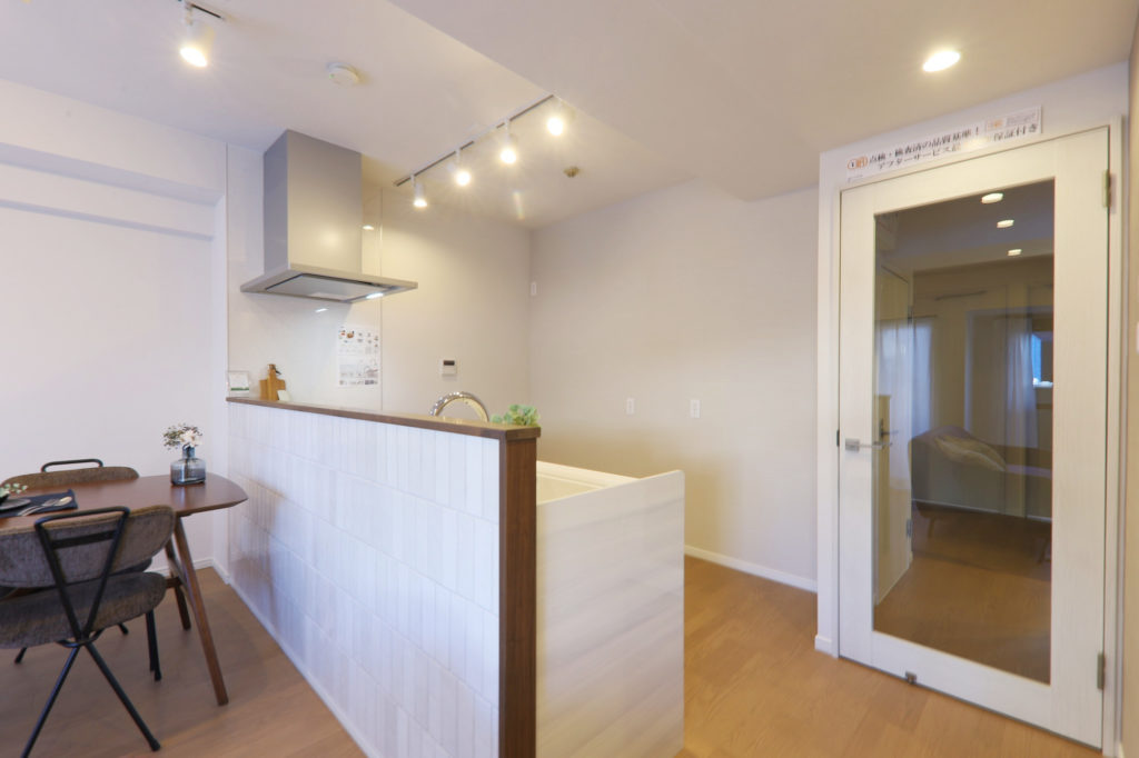 料理をされる方のためにキッチンにこだわった、大型パントリー付き&腰壁にタイル貼をデザインしたリノベーション住戸の事例をご紹介します。