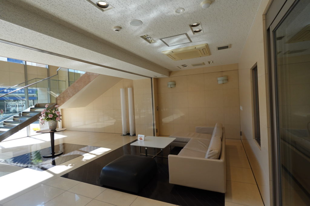 二層吹抜けのエントランスホールの上下階に、テーブルとソファを設置したくつろぎのスペース。ゲストのお出迎えやご歓談などにご利用いただけます。