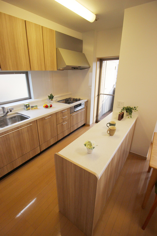 システムキッチンにはカウンター収納付