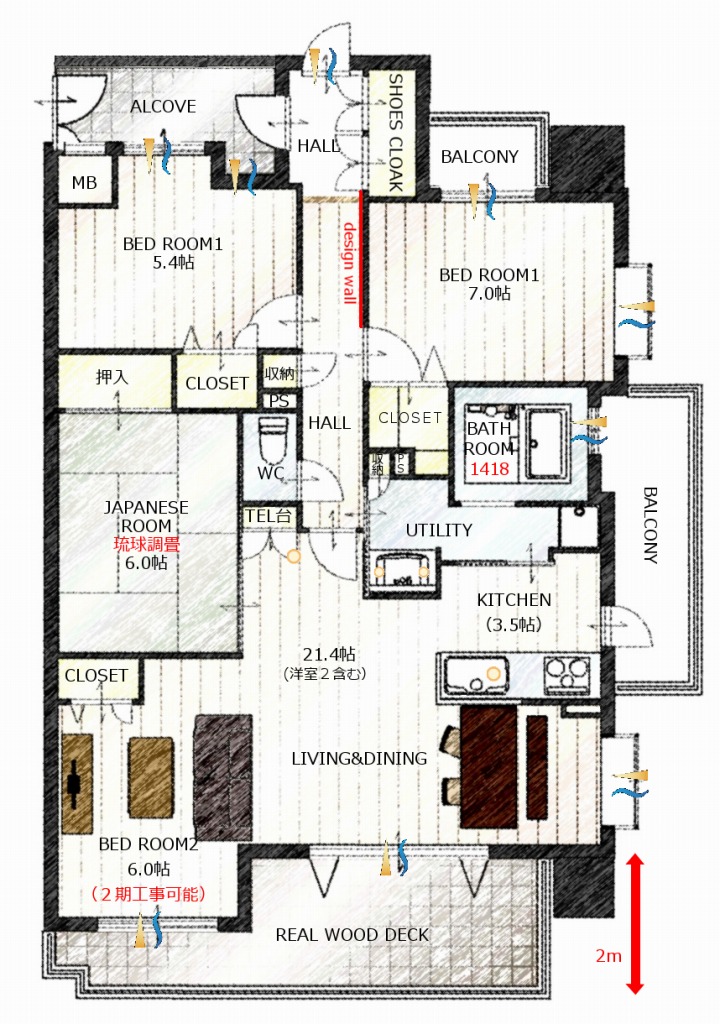 生活空間面積100平米超えのゆとりのスペース。シューズクロークがついているので履物がすっきり仕舞えます。