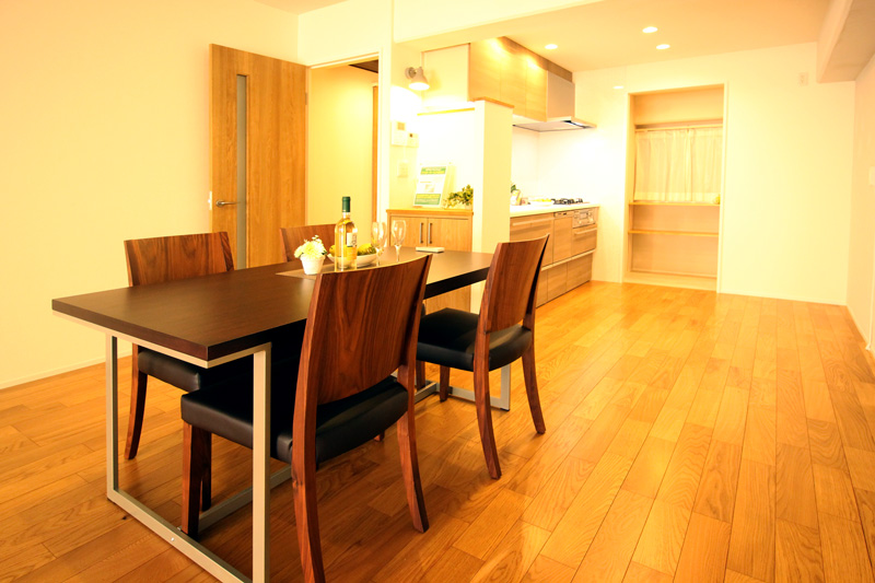- フローリングは無垢ナラ材を使用