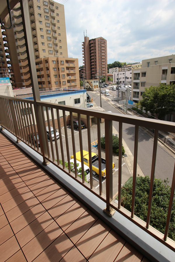 バルコニーにウッドデッキ