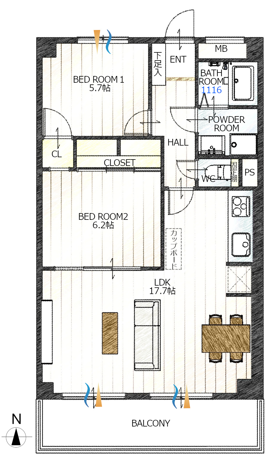 ※当社でフルリノベーションとは4点設備(キッチン、ユニットバス、洗面化粧台、トイレ)を新品に交換しており、内装仕上げ(壁・天井・床)を一新している物を呼びます。