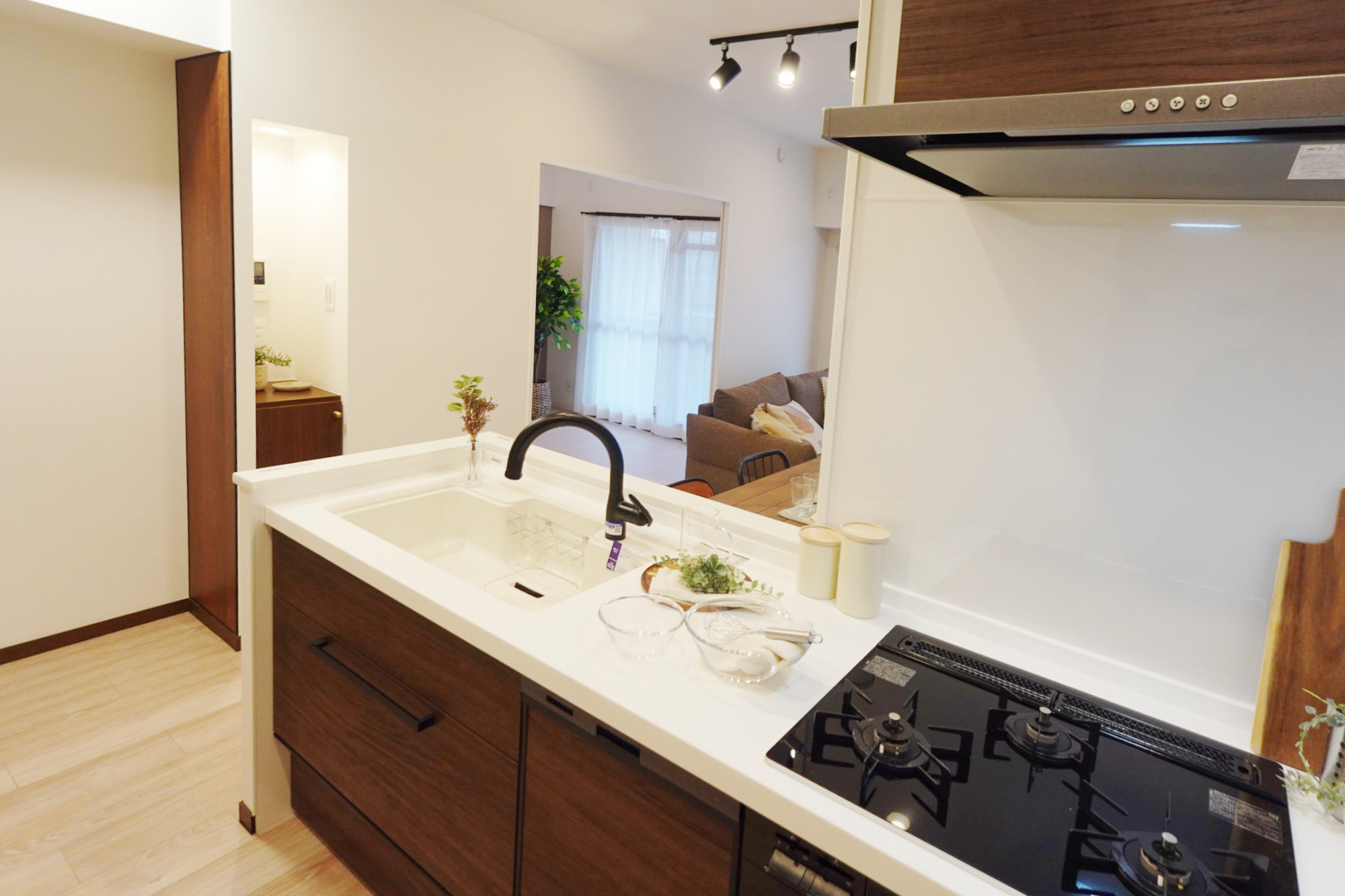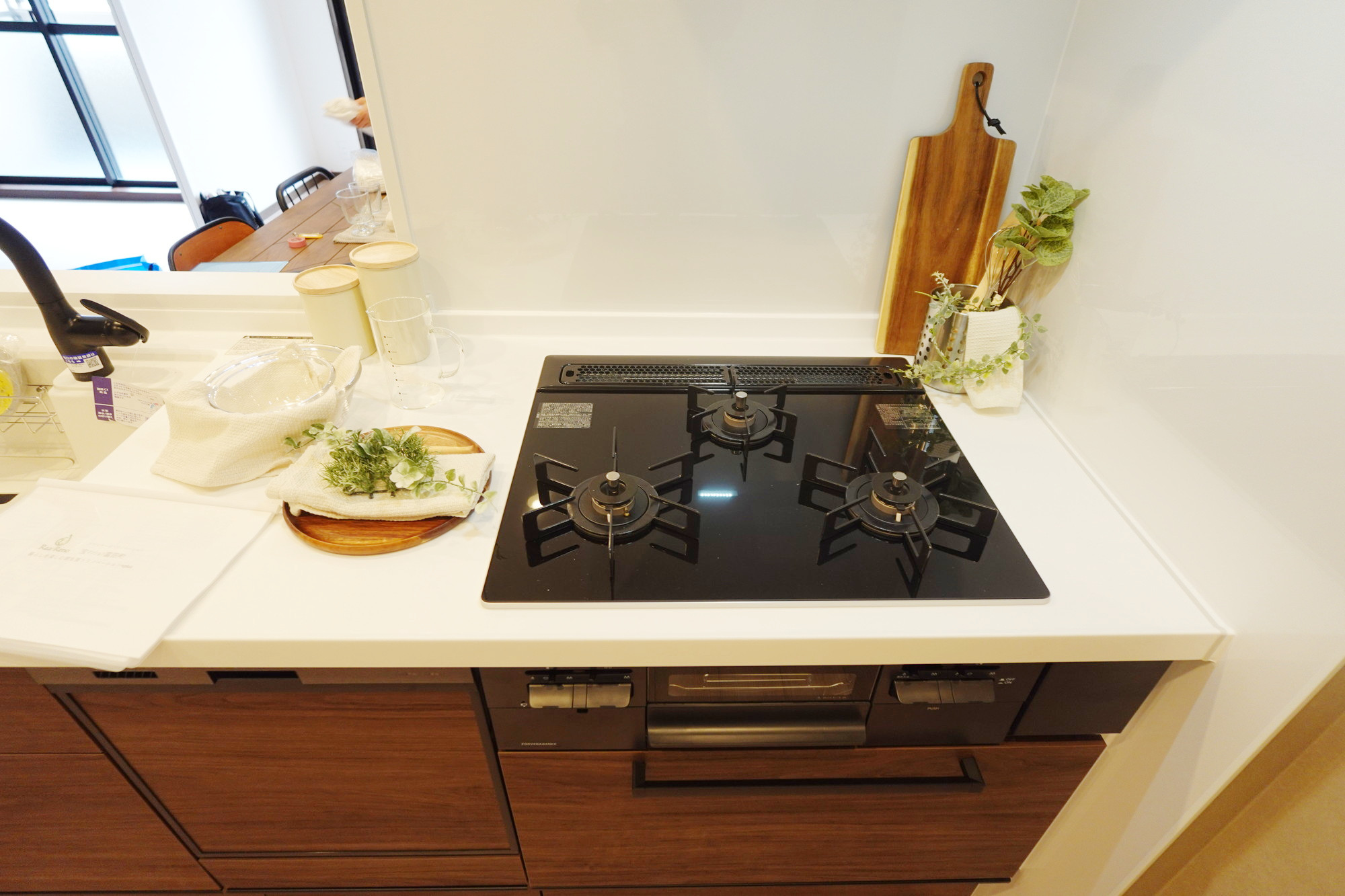 ■キッチン:システムキッチン(食洗機付・3口ガラストップコンロ・浄水器一体型グースネック水栓)