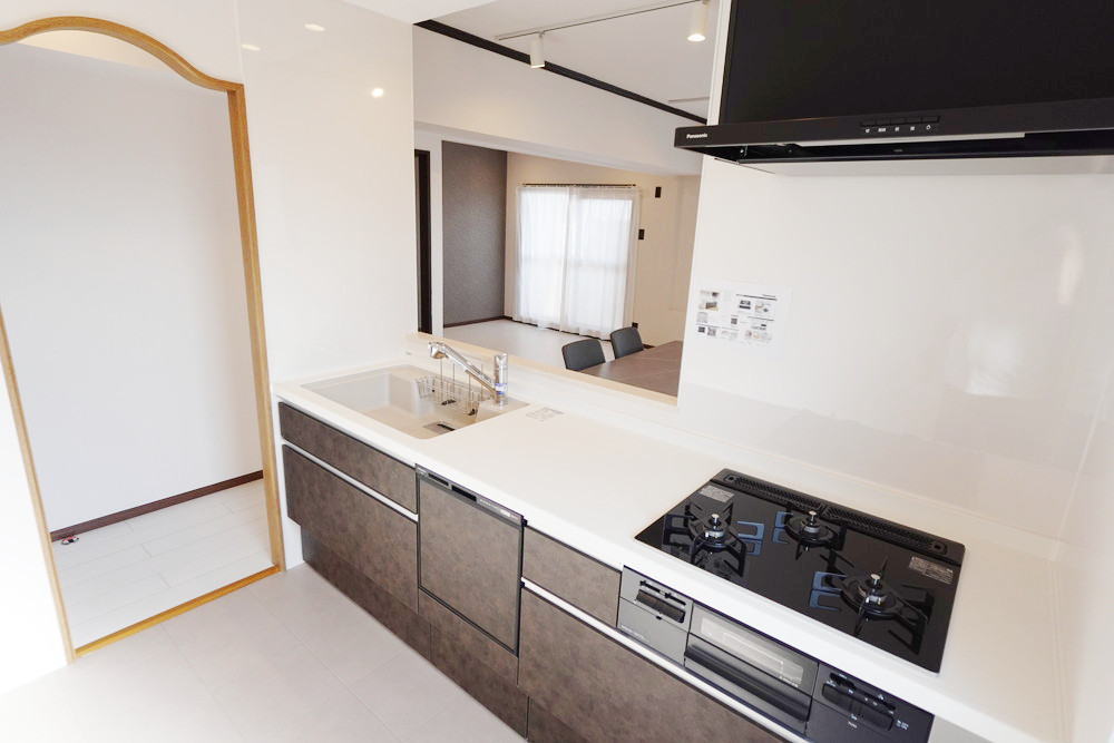 Panasonic製システムキッチン新品交換。食器洗浄乾燥機つき。約5人分(標準食器) 約40点(食器のみの場合)洗えて後片付けがはかどります。料理もガラストップコンロつき、両面焼きグリルなど機能満載。シンクは隙間がないため汚れいくくおそうじ楽々。