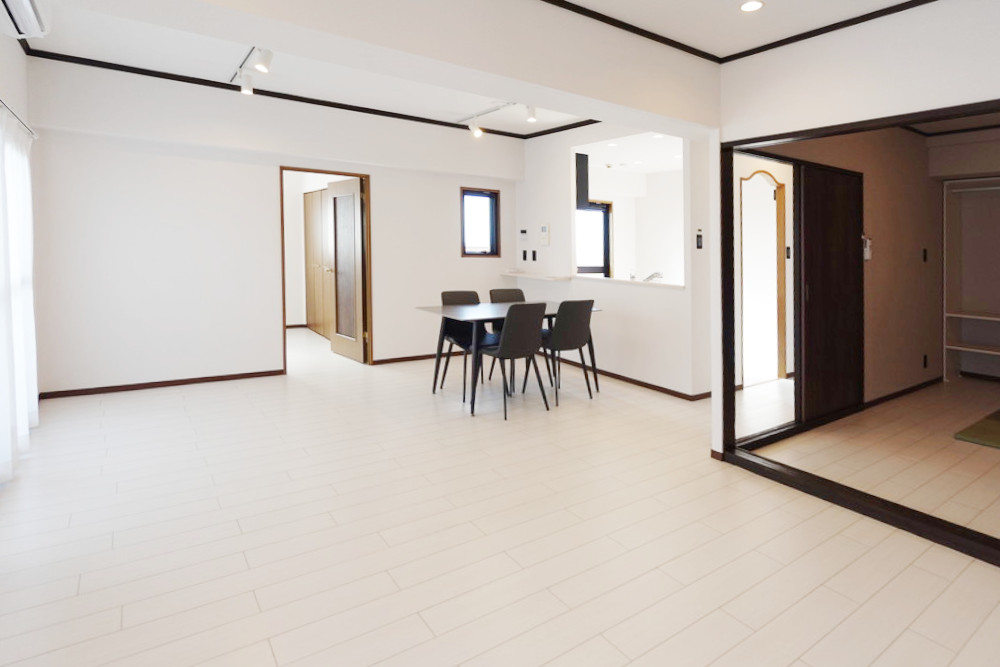 ※当社でフルリノベーションとは4点設備(キッチン、ユニットバス、洗面化粧台、トイレ)を新品に交換しており、内装仕上げ(壁・天井・床)を一新している物を呼びます。