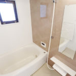 Panasonic製ユニットバス新品交換。美しいツヤとなめらかさで汚れにくく、有機ガラス系素材のスゴピカ浴槽、保温浴槽、W水流シャワー。床は乾きやすく、滑りにくく、お掃除しやすいスゴピカフロア。
