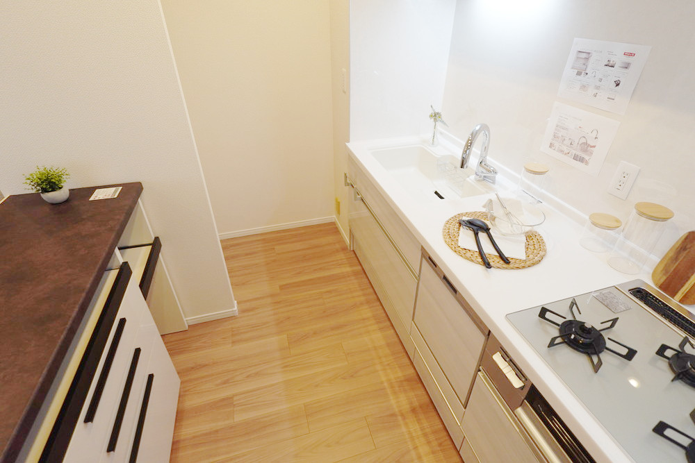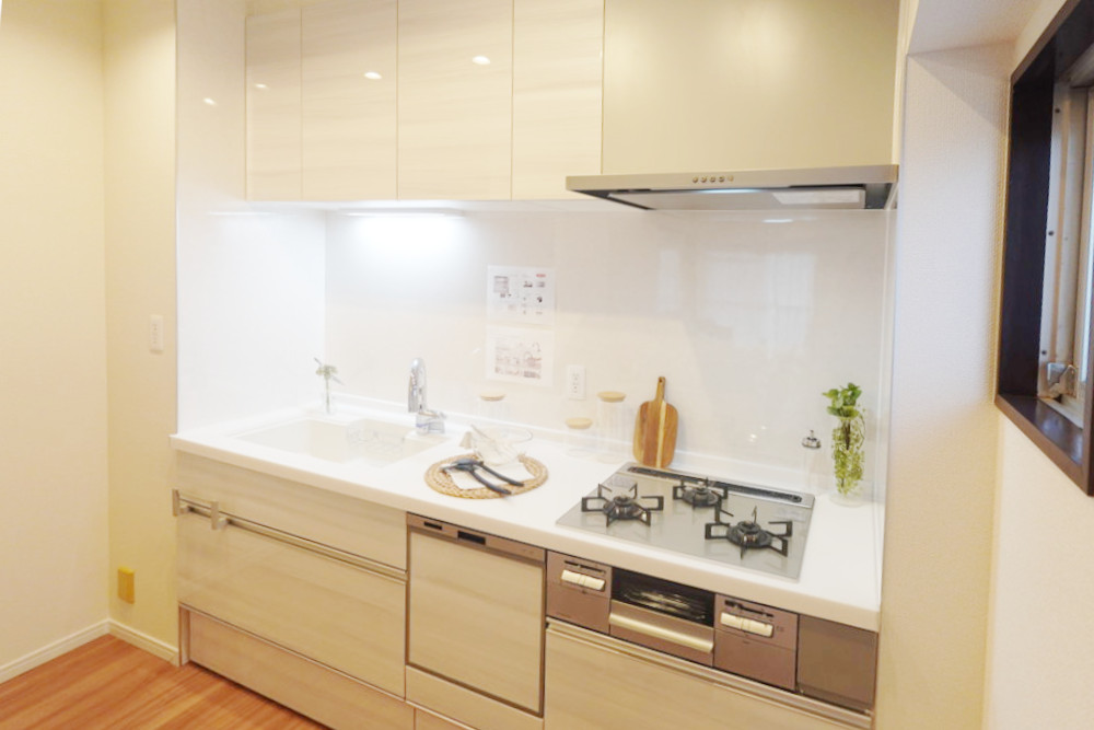 ■キッチン:システムキッチン(W2250・食洗機付・3口ガラストップコンロ・浄水器付き水栓)
