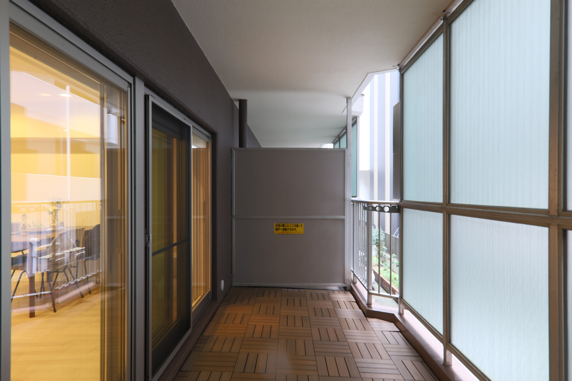 ■木材チップ製ウッドデッキ(バルコニー)