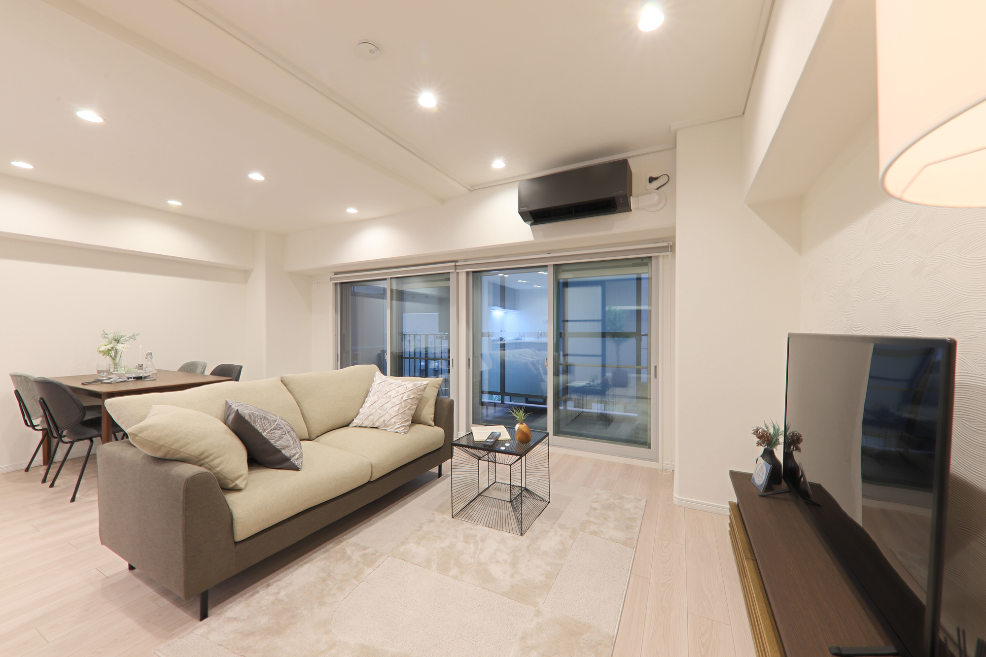 内窓Low-E複層ガラス(全窓)、ハニカムブラインド(全窓)、高効率エアコン1台新設