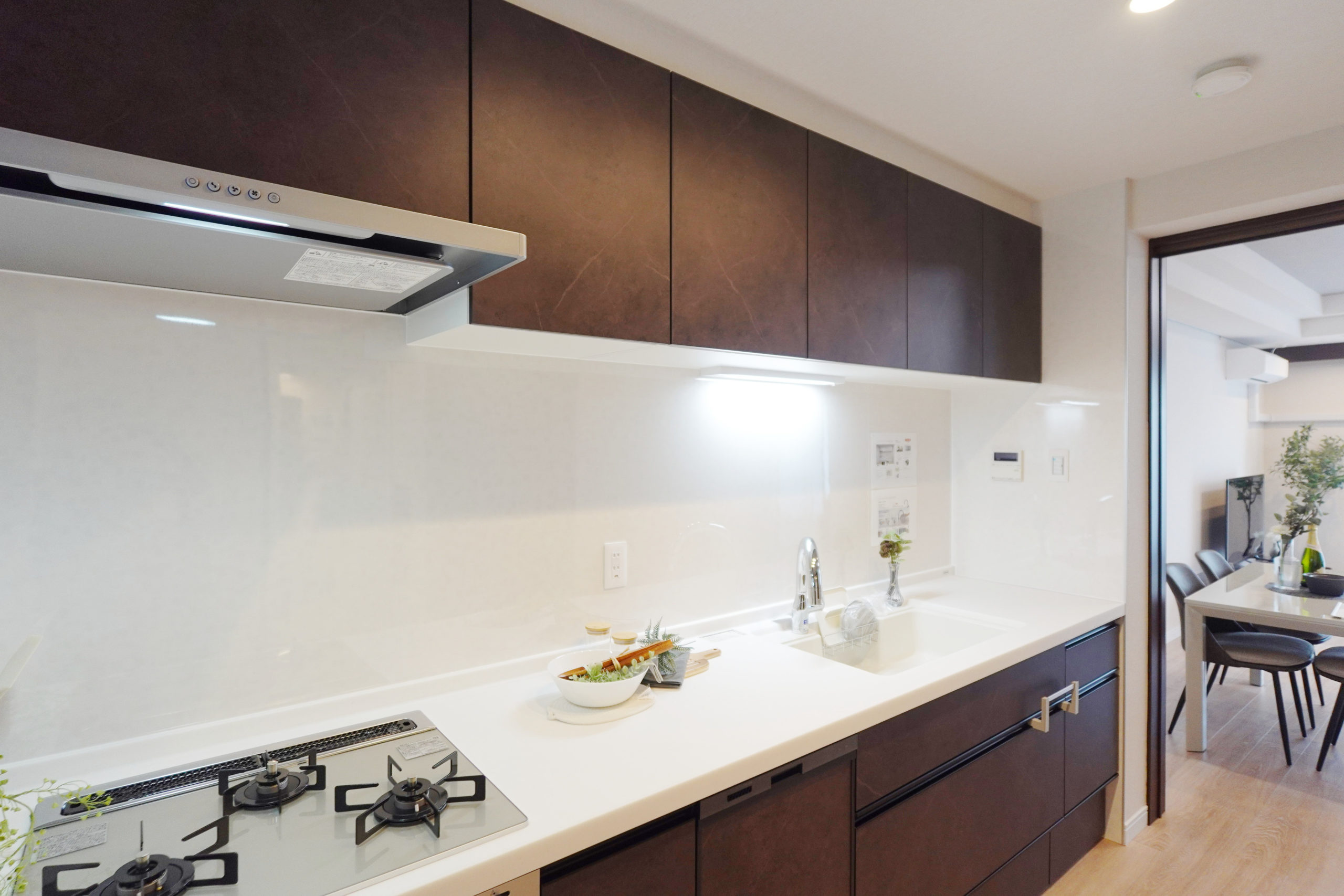 ■キッチン:システムキッチン(クリナップ・W3000・食洗機付・3口ガラストップコンロ・浄水器付き水栓)