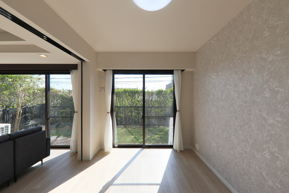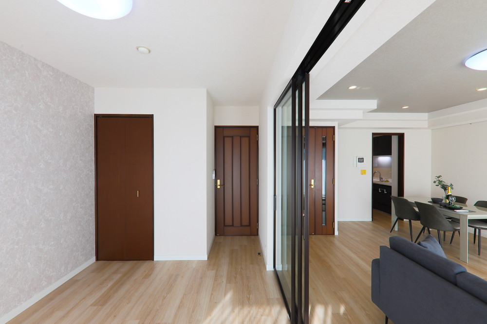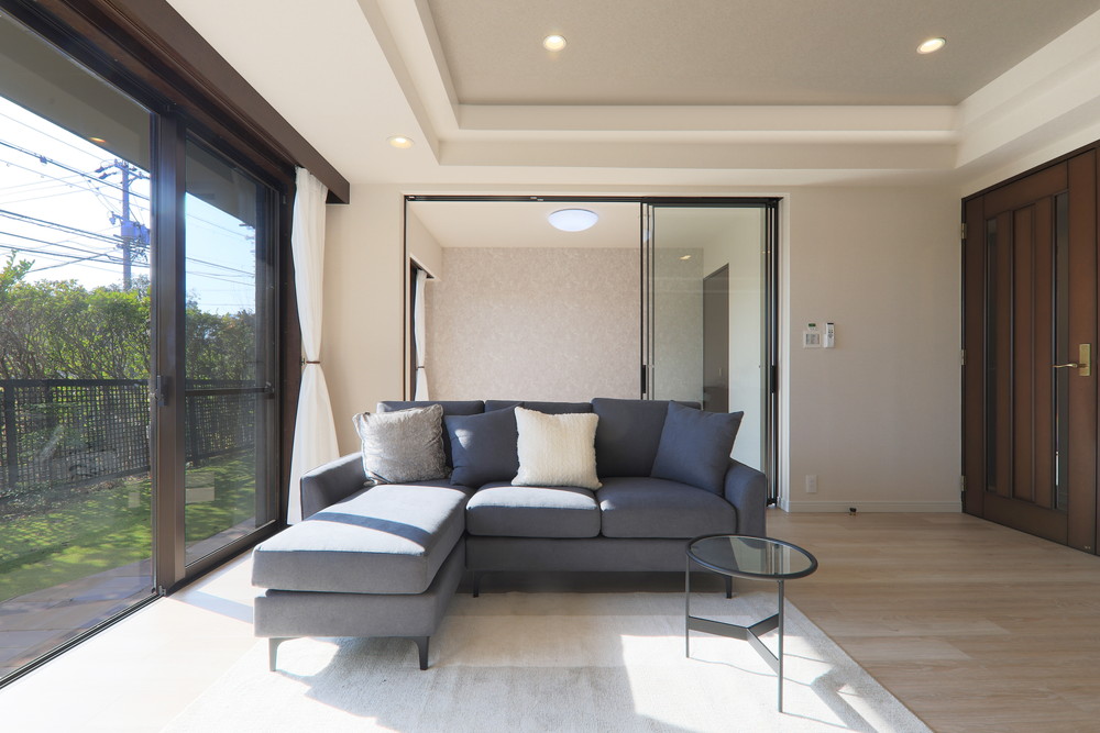 ■建具:洋室1(パナソニック・シンプルでシャープな空間を演出するこだわりのガラス引戸。光が入り視線が通るガラスの引戸で間仕切れば、圧迫感がなく、開放的な雰囲気でワンランク上の空間に)
