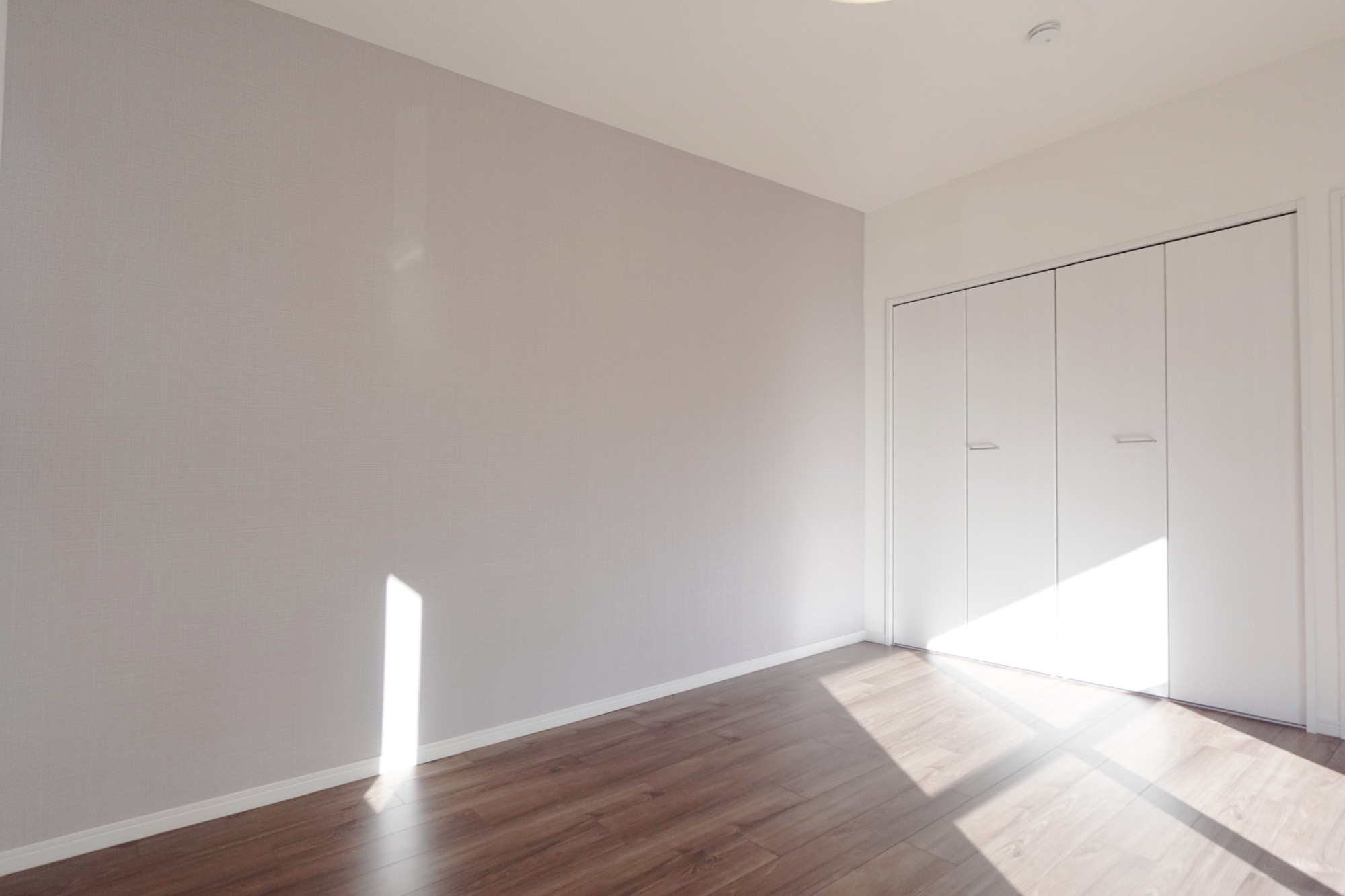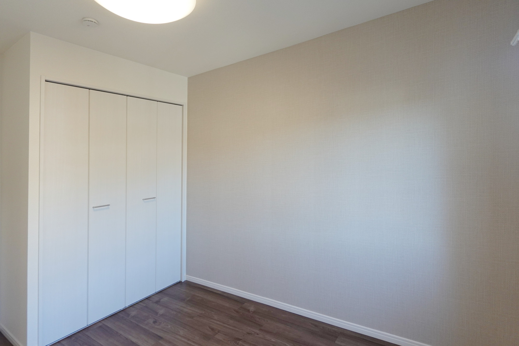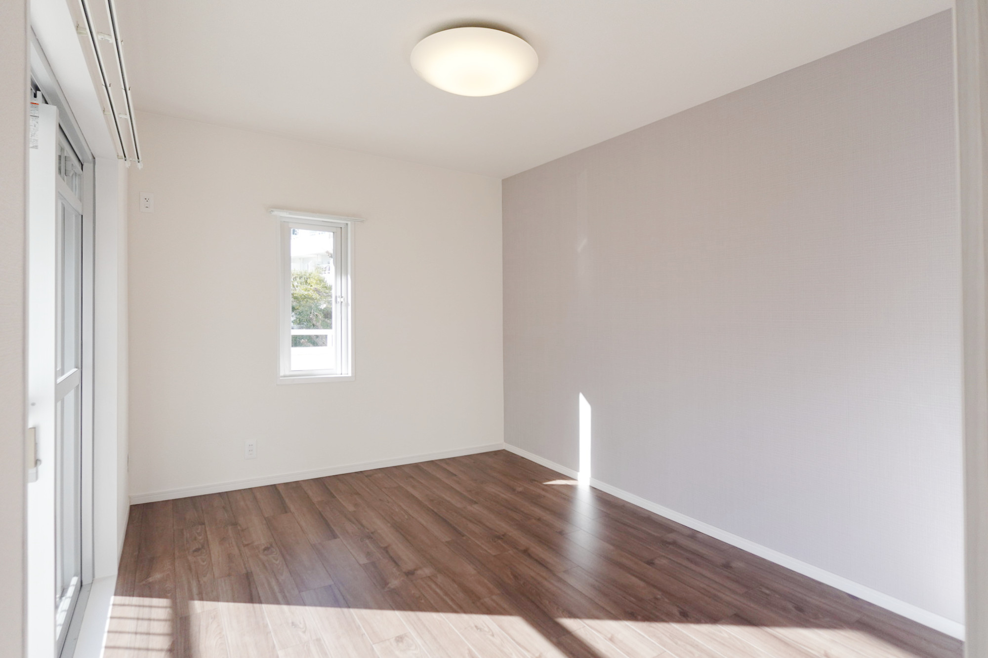 床はトレンドを反映した豊富な色柄のフローリング貼。ボールドチーク柄をセレクトしています。