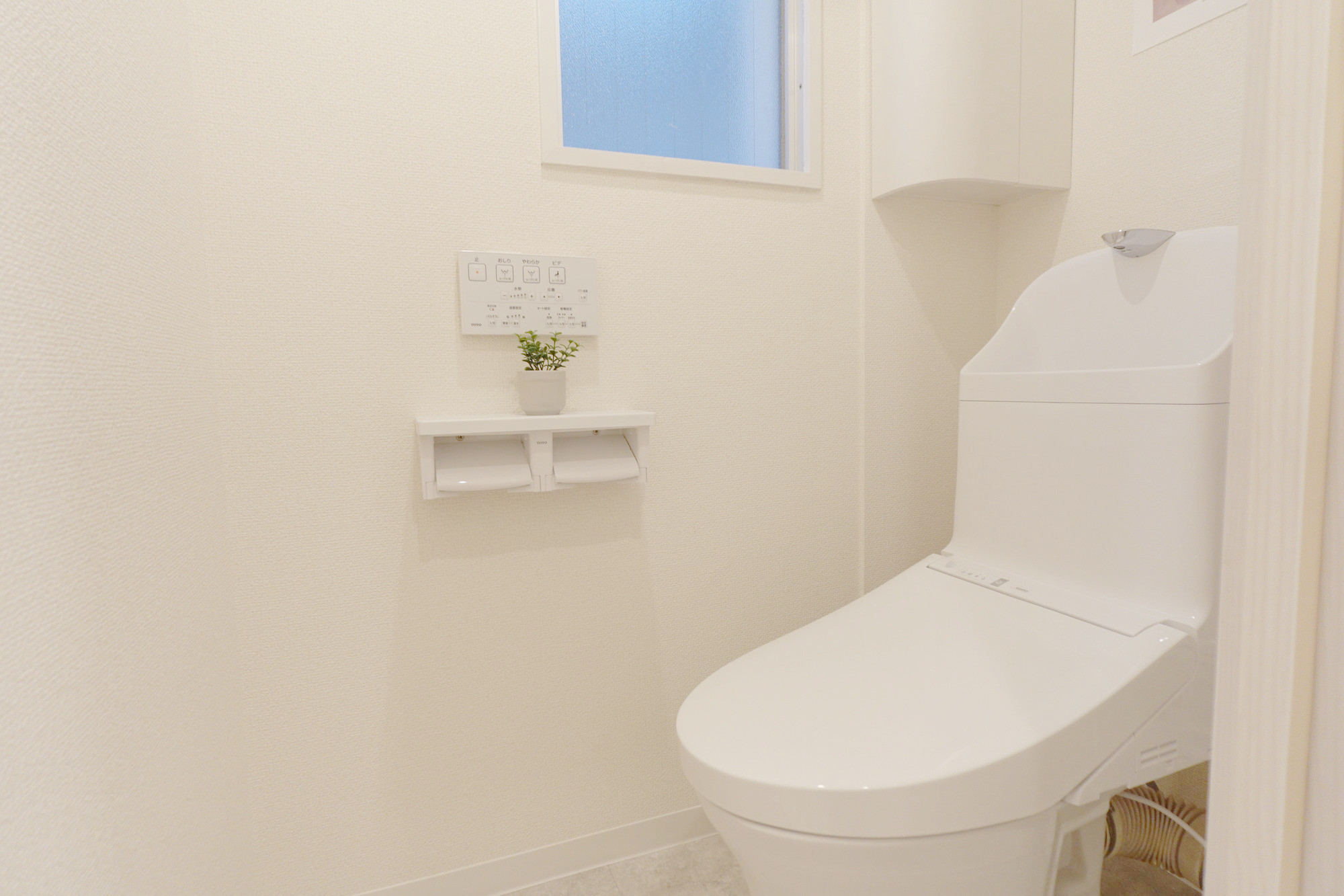 ■温水洗浄便座付きトイレ新品交換。コーナー収納も設けました。
