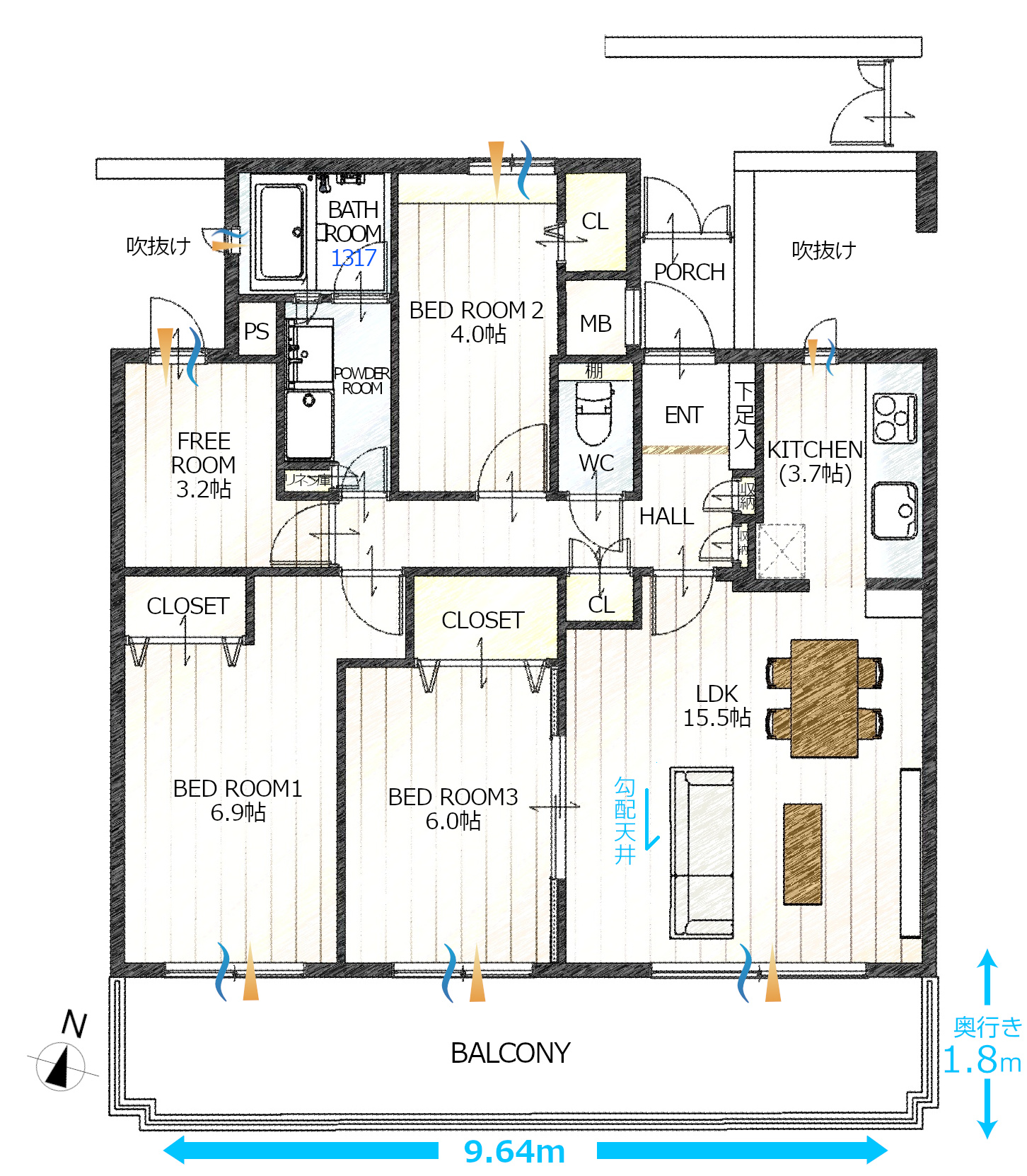 #浴室窓つき#ワイドバルコニー#南面間口約10m#敷地内駐車場 #3.2帖大のフリールーム